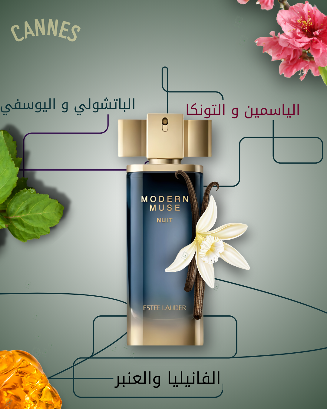 بينما تختتمها القاعدة العطرية برفقة فول التونكا، المسك، العنبر، فانيلا مدغشقر، البتشول وخشب الصندل.